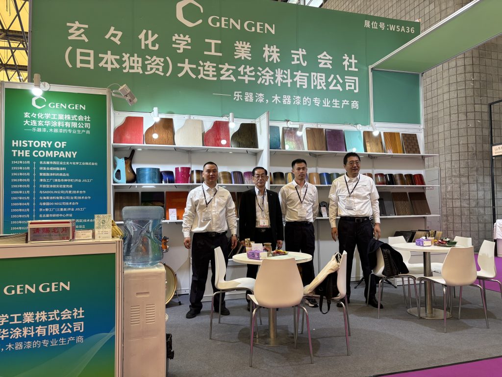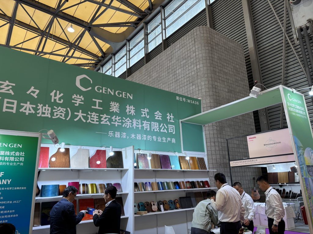 玄々化学工業と現地法人の大連玄華塗料との合同で出展し、ブースでは楽器向けの塗装サンプルを多数展示しました。